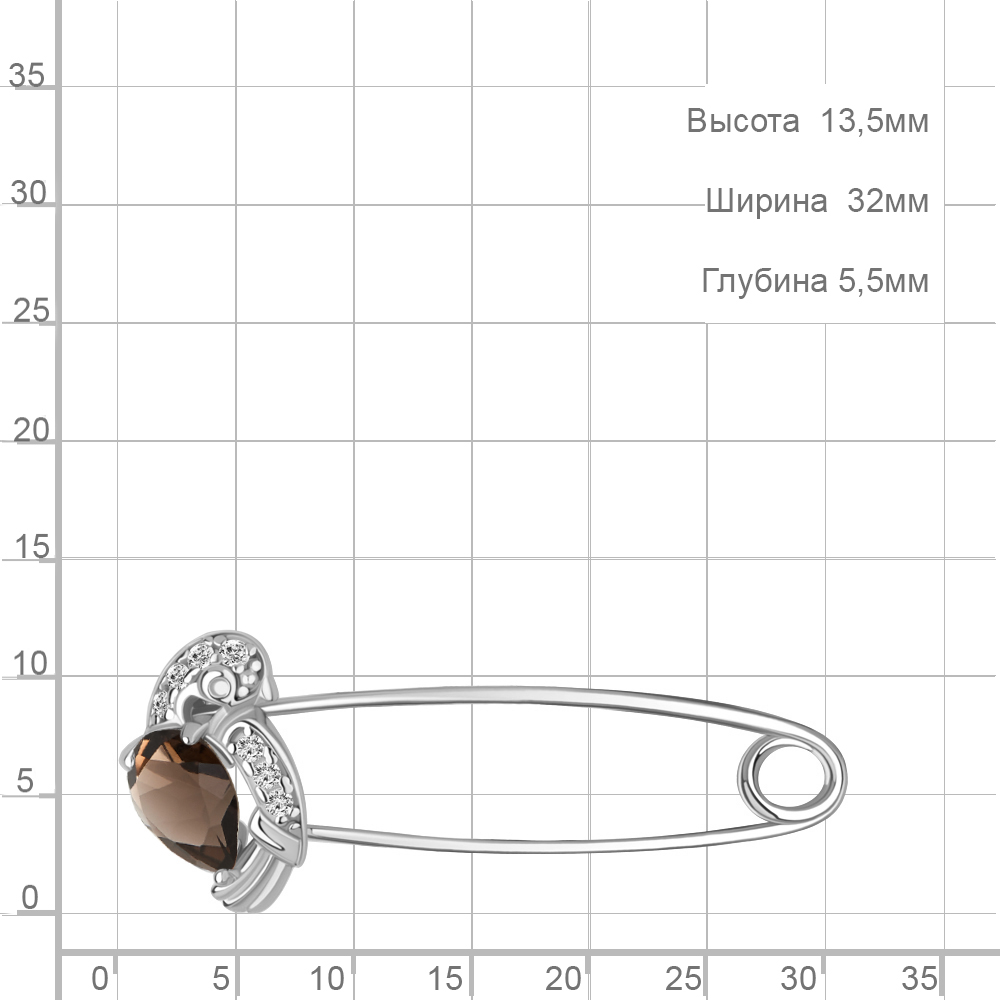 7749901А Булавка из Серебра с кварцем дымчатым, фианитами