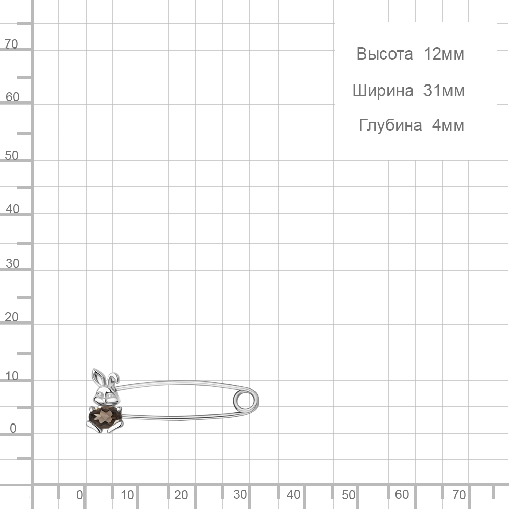7750001 Булавка из Серебра с кварцем дымчатым