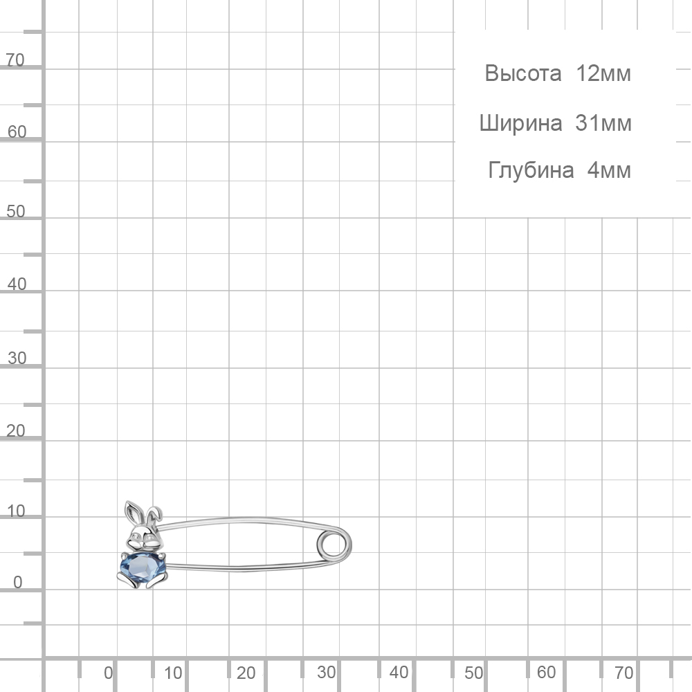 7750005 Булавка из Серебра с топазом свисс блю