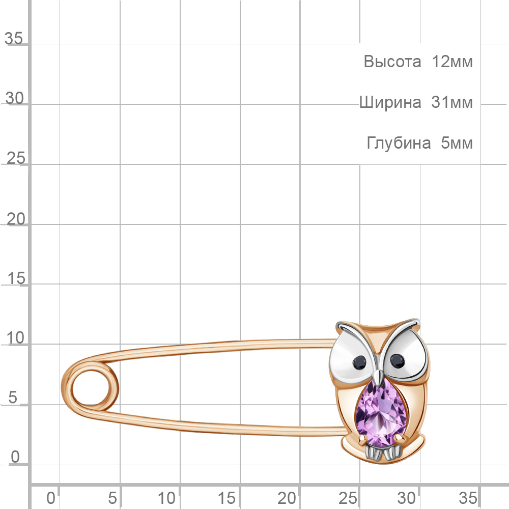 7750404Ч Булавка из Серебра с аметистом, нанокристаллами