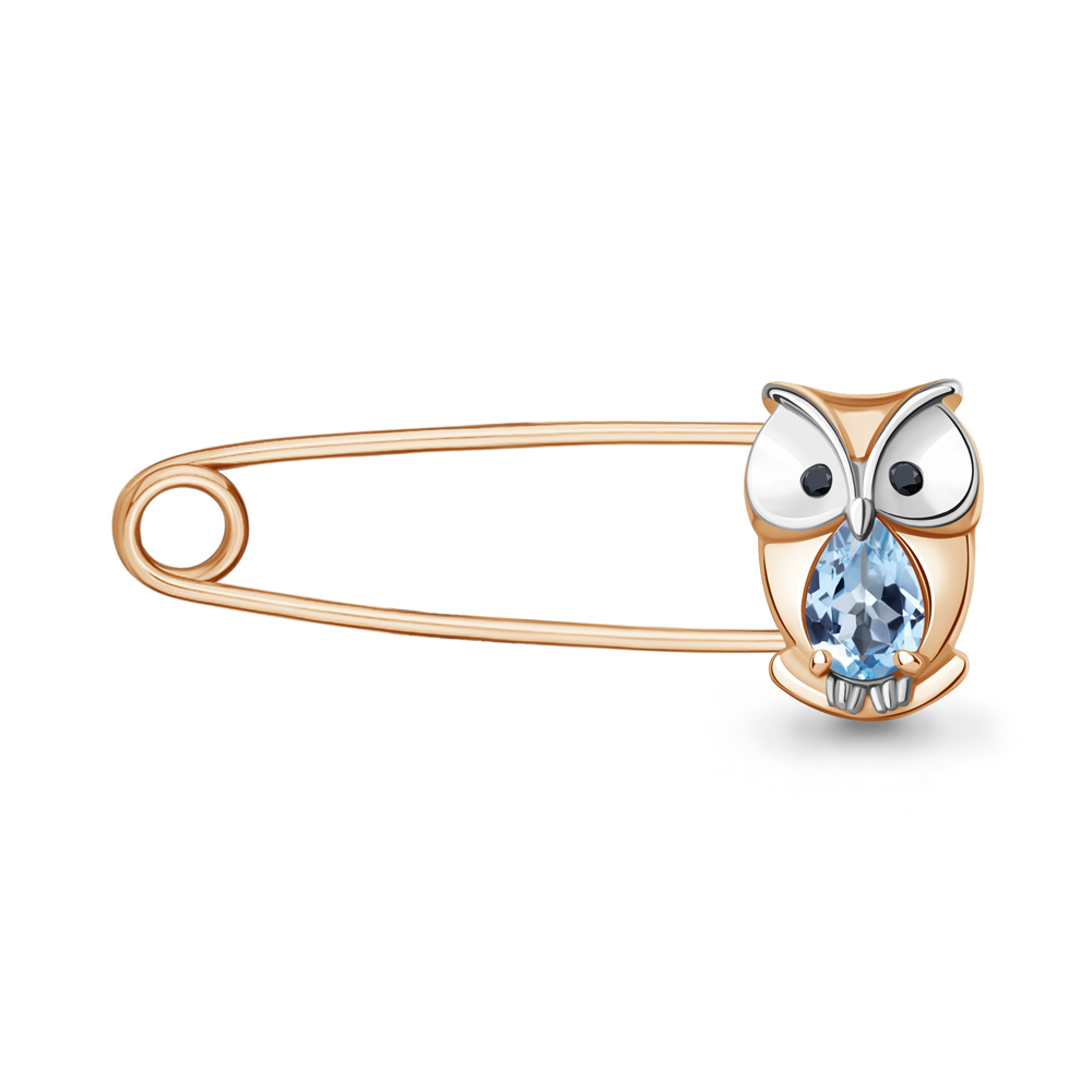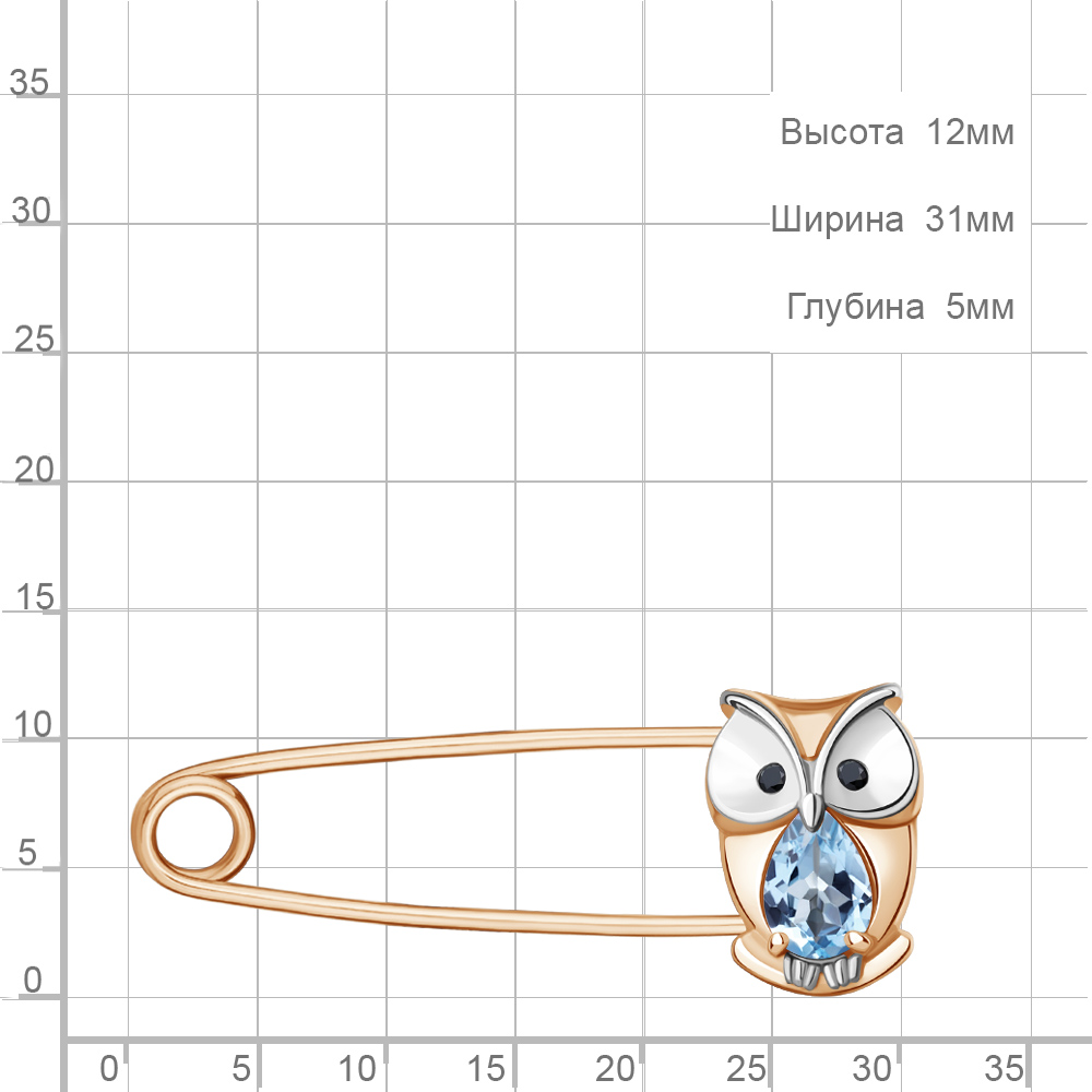 7750405Ч Булавка из Серебра с нанокристаллами, топазом свисс блю