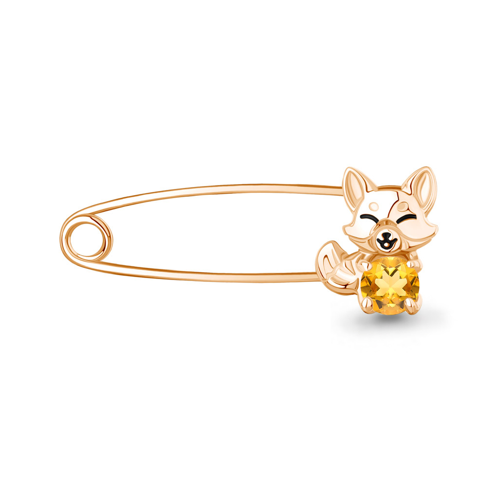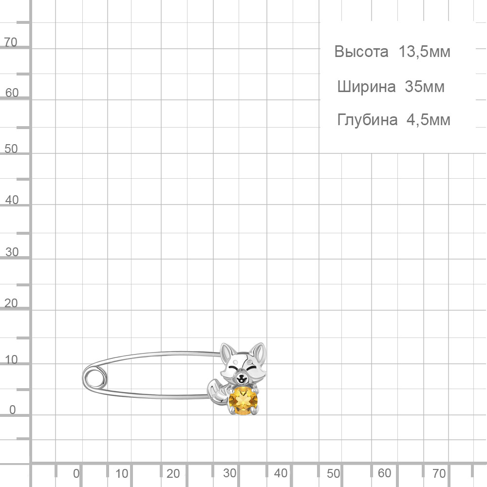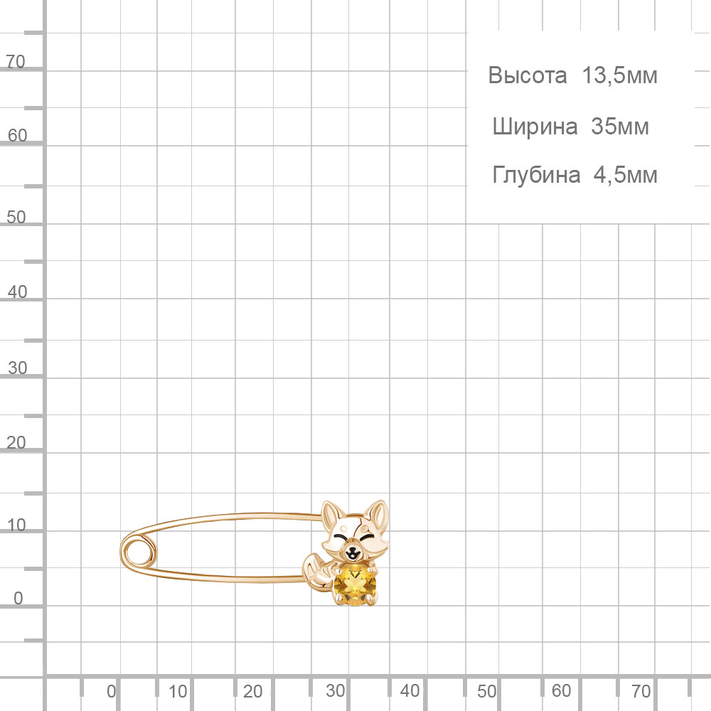7750506 Булавка из Серебра с цитрином, эмалью