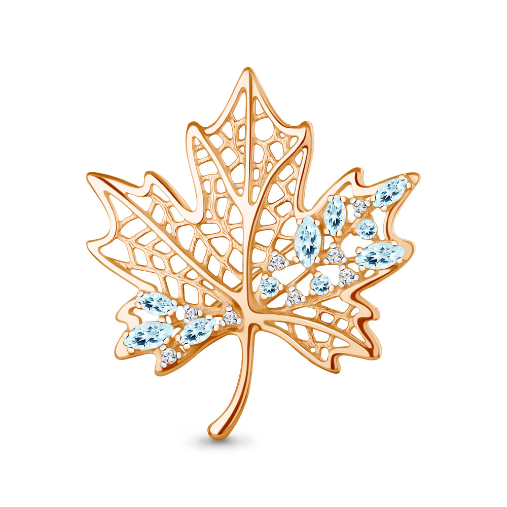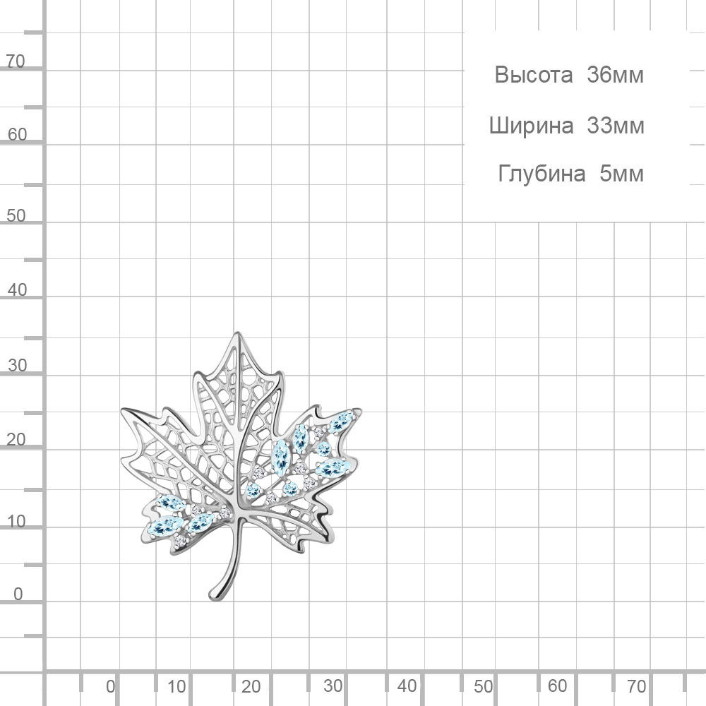 7751202А Брошь из Серебра с топазами скай блю, фианитами
