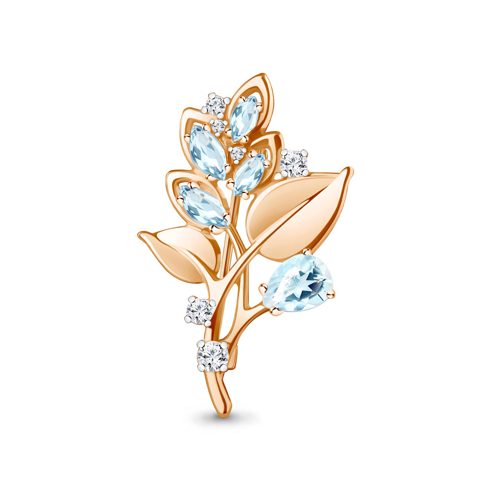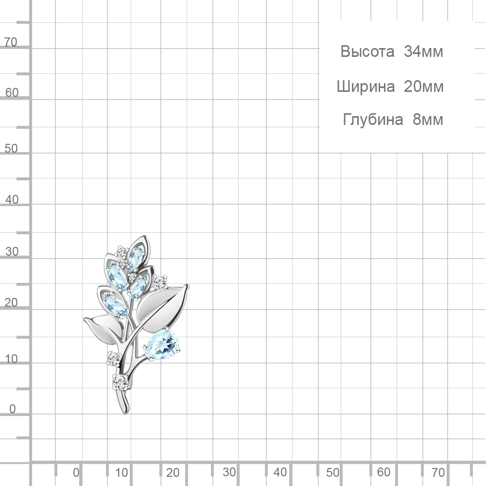 7751602А Брошь из Серебра с топазами скай блю, фианитами