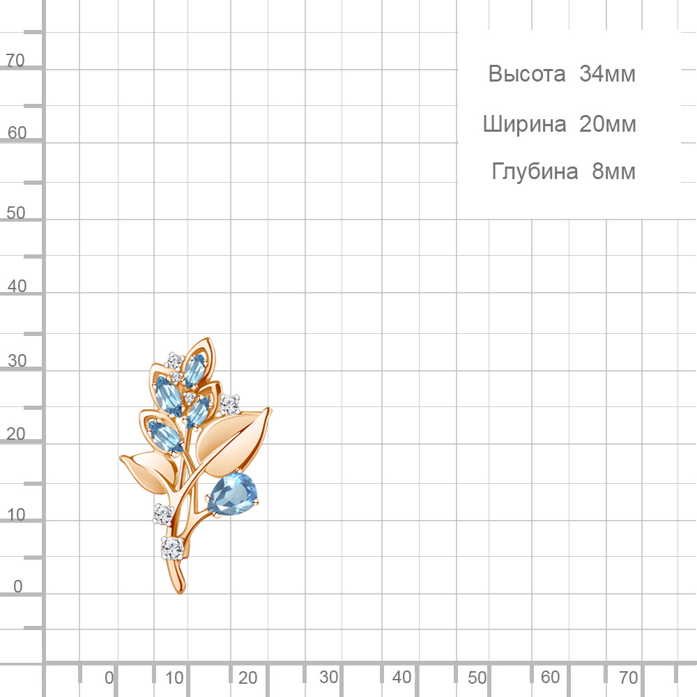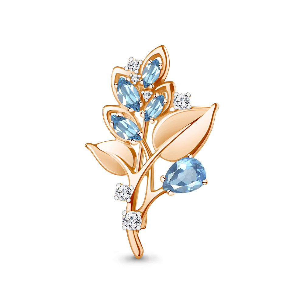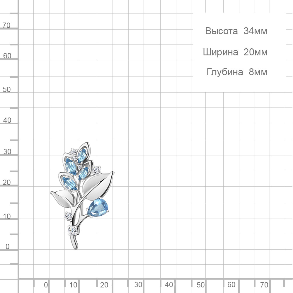 7751605А Брошь из Серебра с топазами свисс блю, фианитами