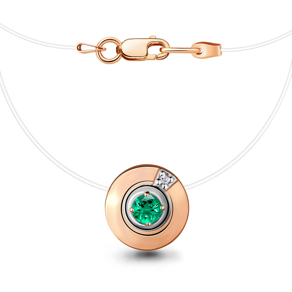 0700445 Колье из Серебра с бриллиантом, изумрудом гт, леской