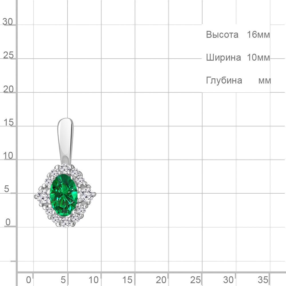 24497АГ Подвеска из Серебра с наноизумрудом, фианитами