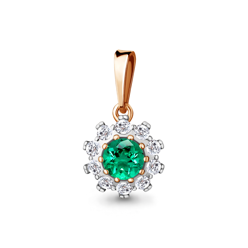 24514АГ Подвеска из Серебра с наноизумрудом, фианитами