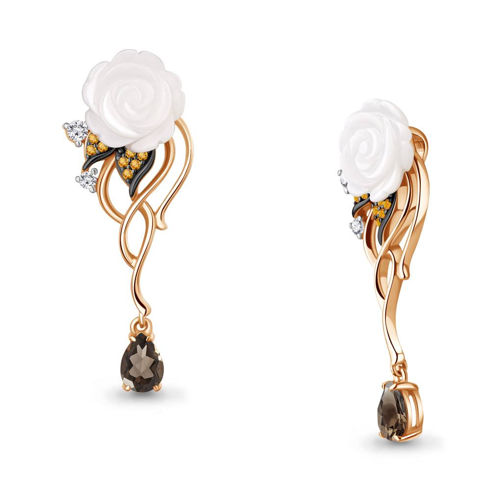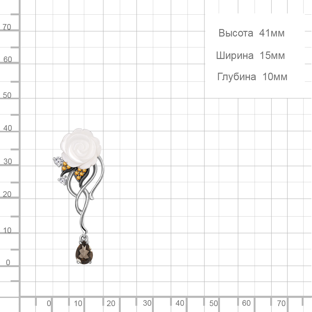 Описание камней 1 Кварц дымчатый; 1 Перламутр; 1 Фианит; 1 Фианит; 8 Наноцитрин