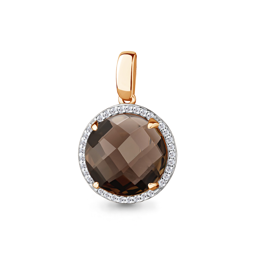 2508201А Подвеска из Серебра с кварцем дымчатым, фианитами