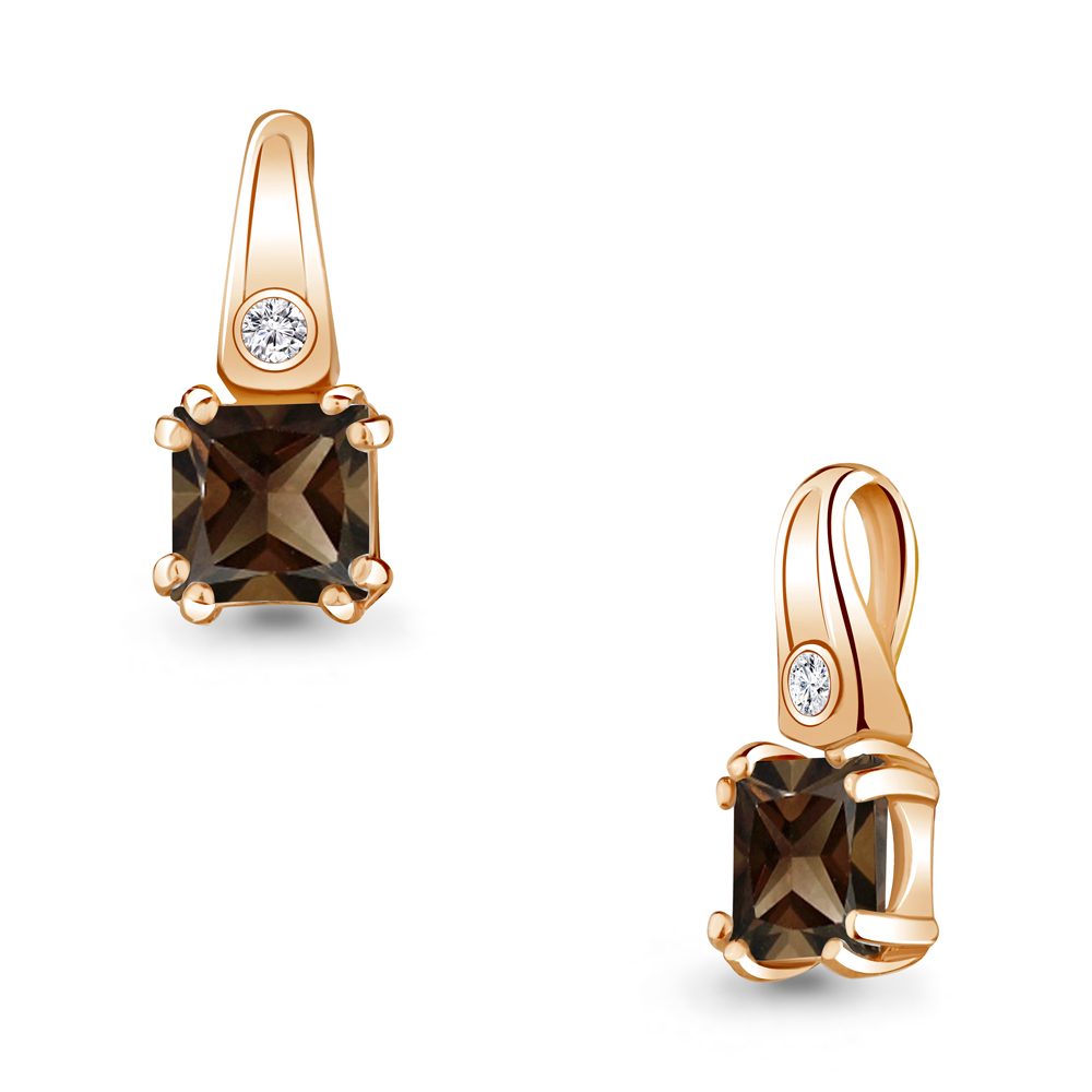 2529001А Подвеска из Серебра с кварцем дымчатым, фианитом