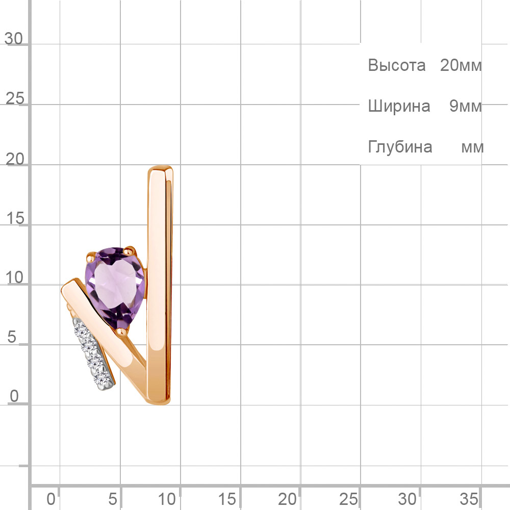 2531604А Подвеска из Серебра с аметистом, фианитами