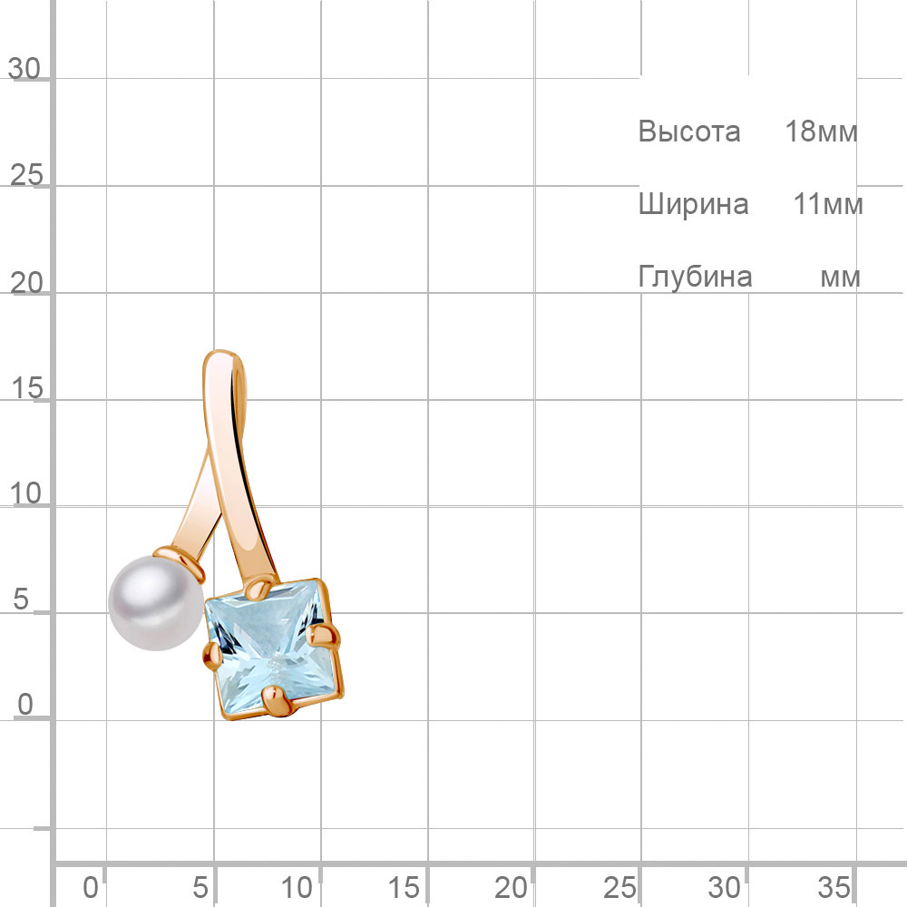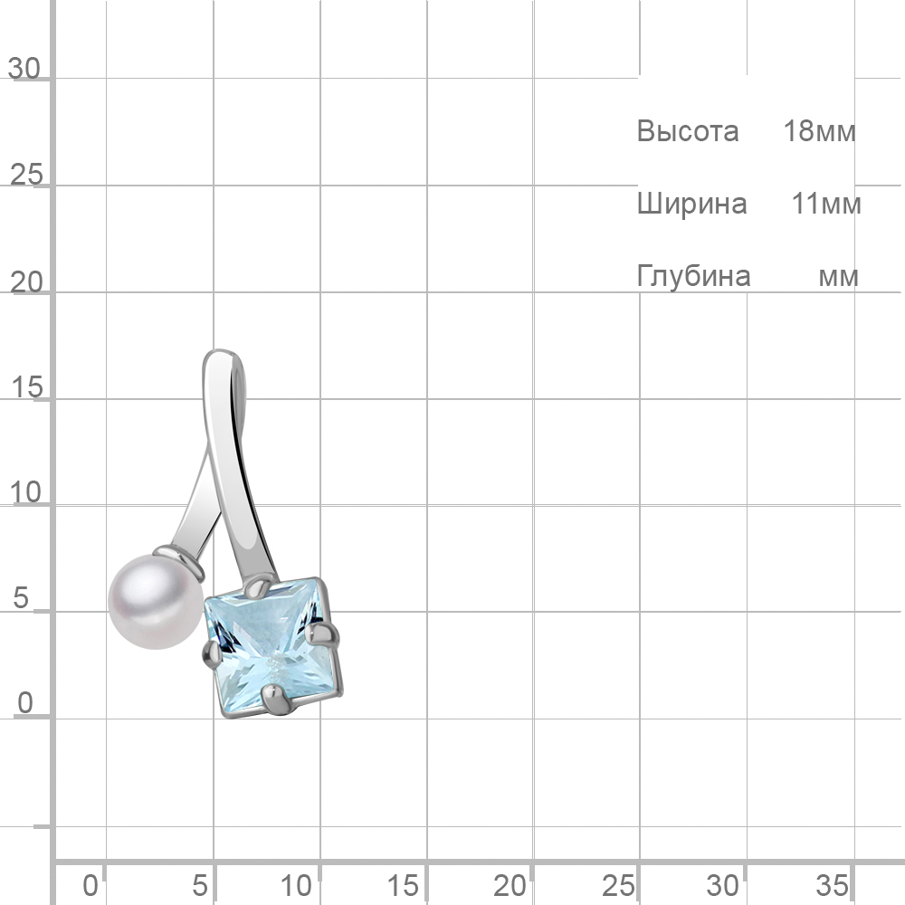 2533002 Подвеска из Серебра с культ. жемчугом ааа, топазом скай блю