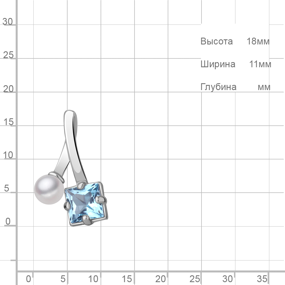 2533005 Подвеска из Серебра с культ. жемчугом ааа, топазом свисс блю