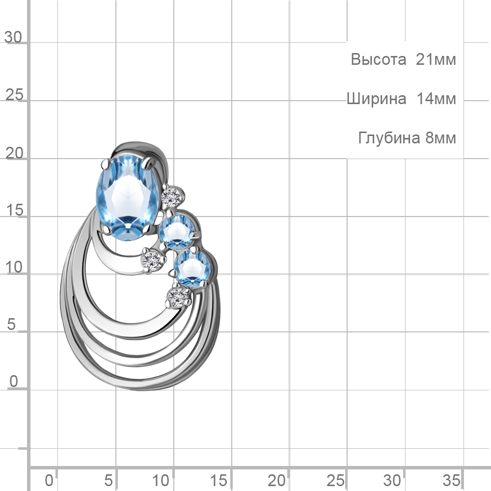 2534205А Подвеска из Серебра с топазами свисс блю, фианитами