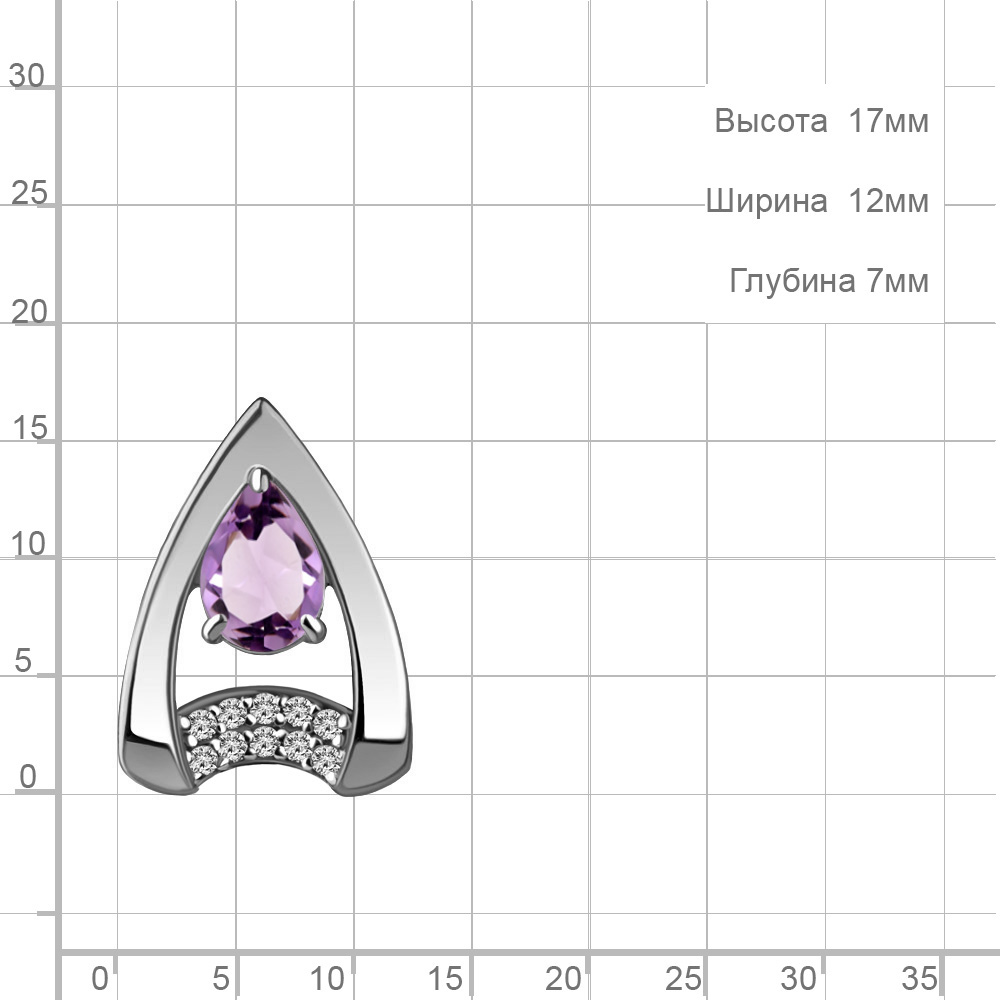 2534404А Подвеска из Серебра с аметистом, фианитами