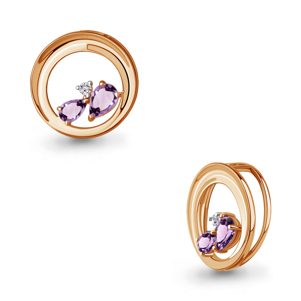 2538004А Подвеска из Серебра с аметистами, фианитом