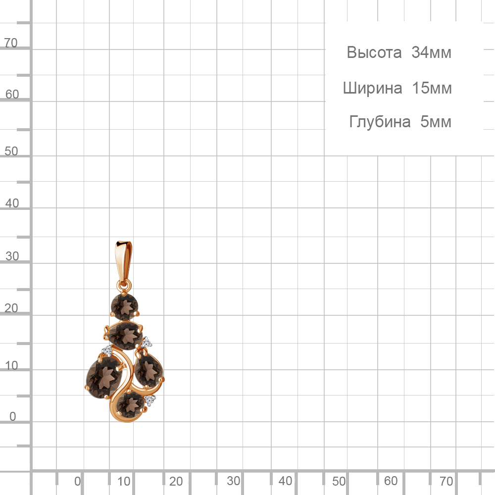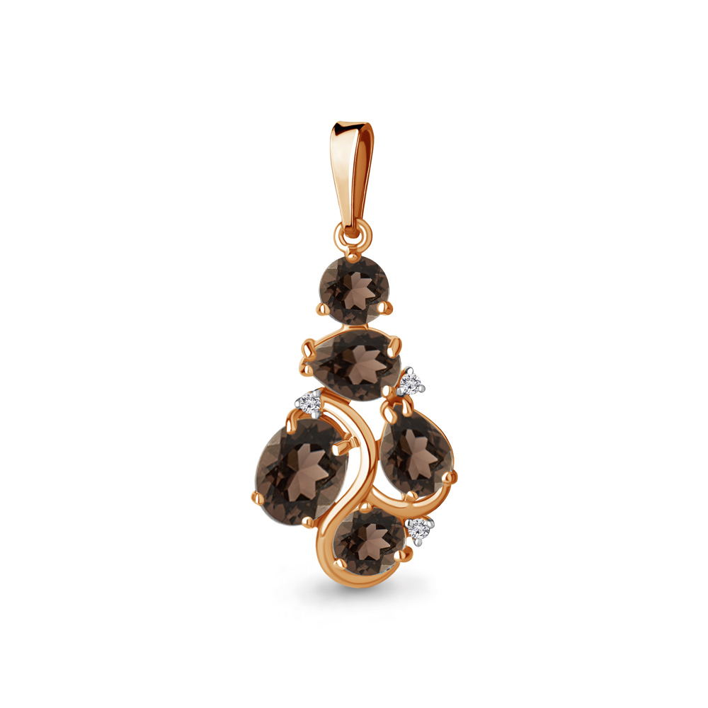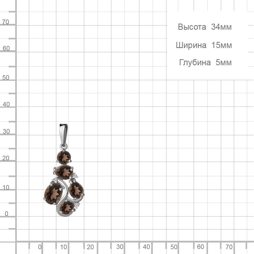 2539001 Подвеска из Серебра с кварцами дымчатыми, фианитами