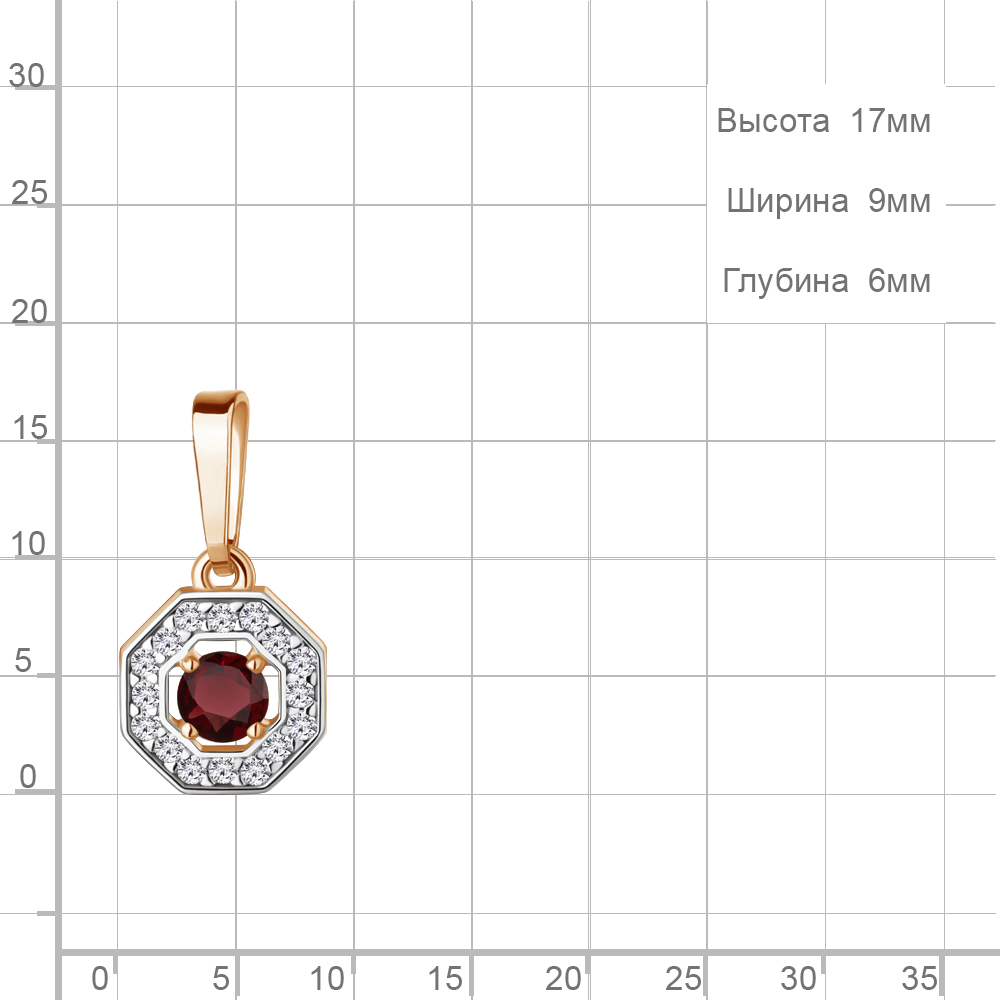 2543403А Подвеска из Серебра с гранатом, фианитами