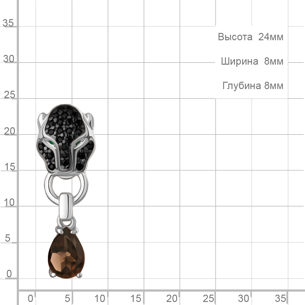 2546101ГЧ Подвеска из Серебра с кварцем дымчатым, наноизумрудами, нанокристаллами