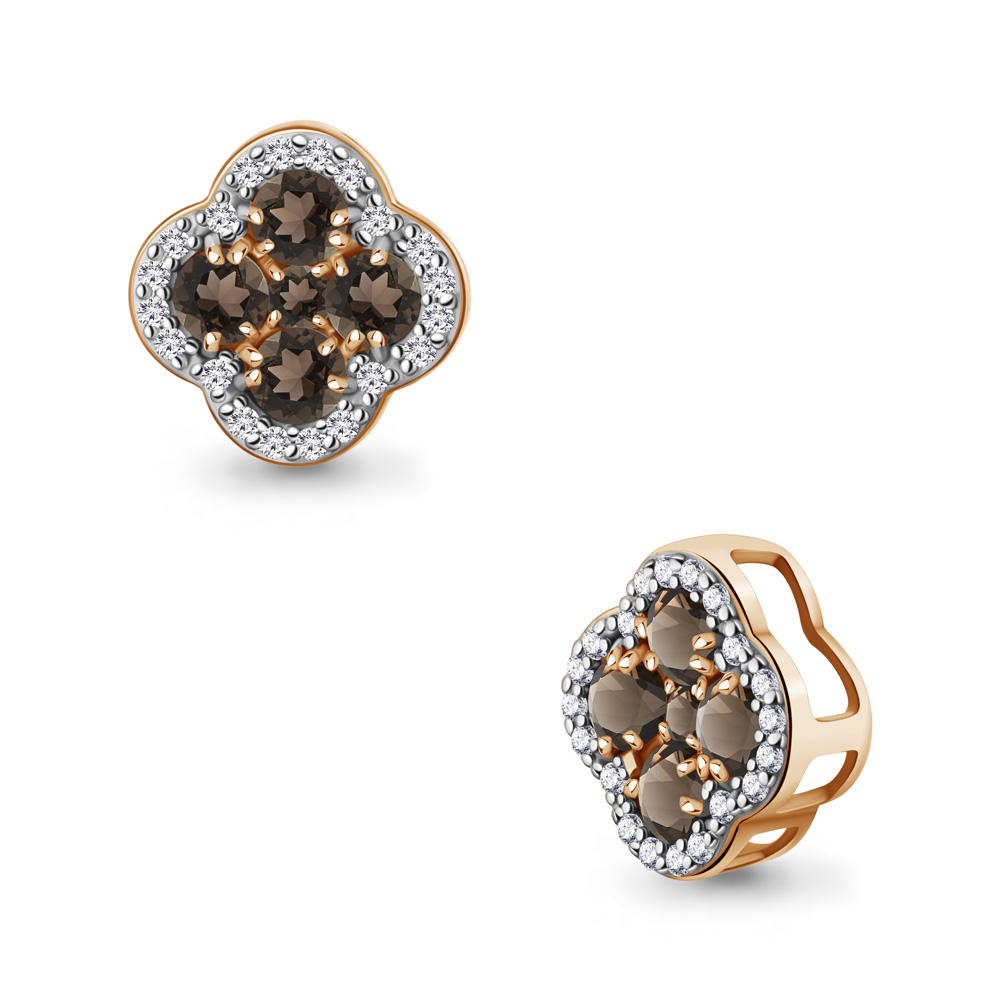 2546401А Подвеска из Серебра с кварцами дымчатыми, фианитами