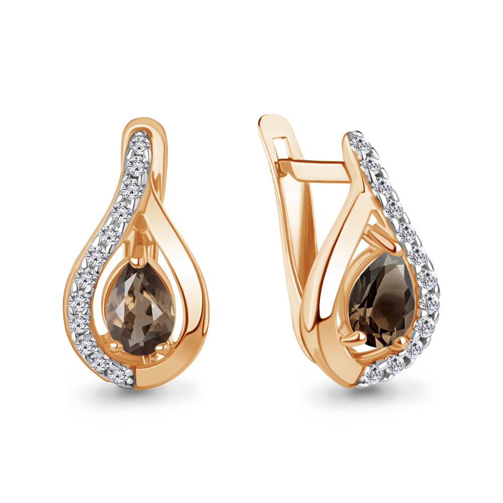 40009801А Серьги из Серебра с кварцами дымчатыми, фианитами