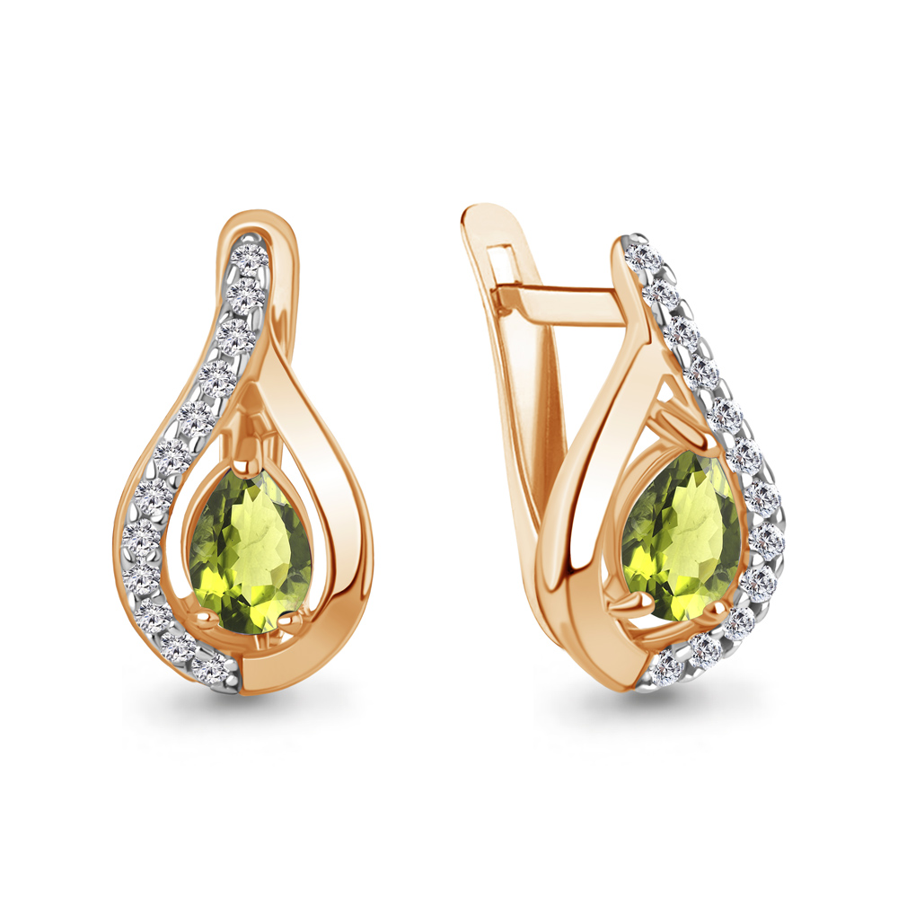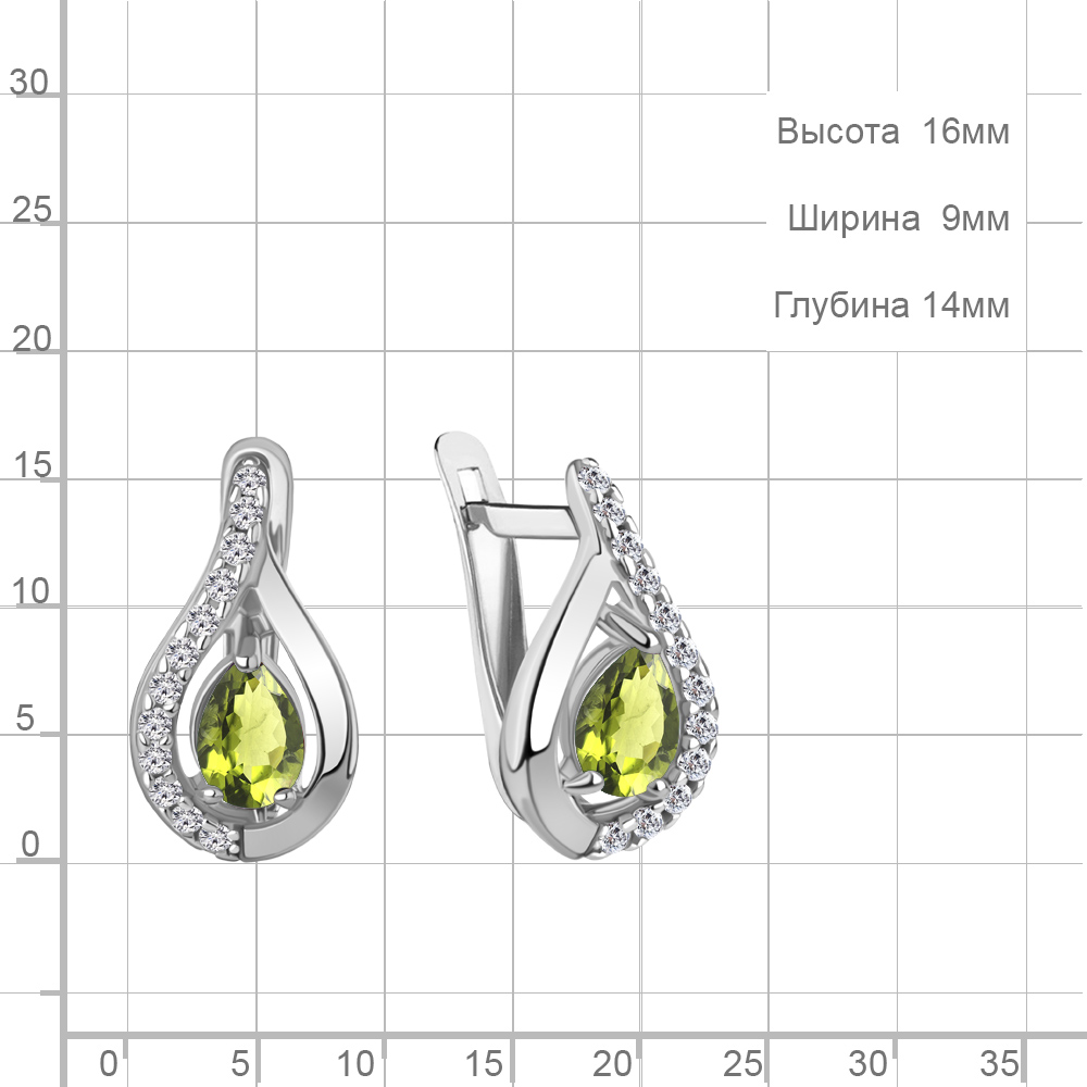 40009807А Серьги из Серебра с фианитами, хризолитами
