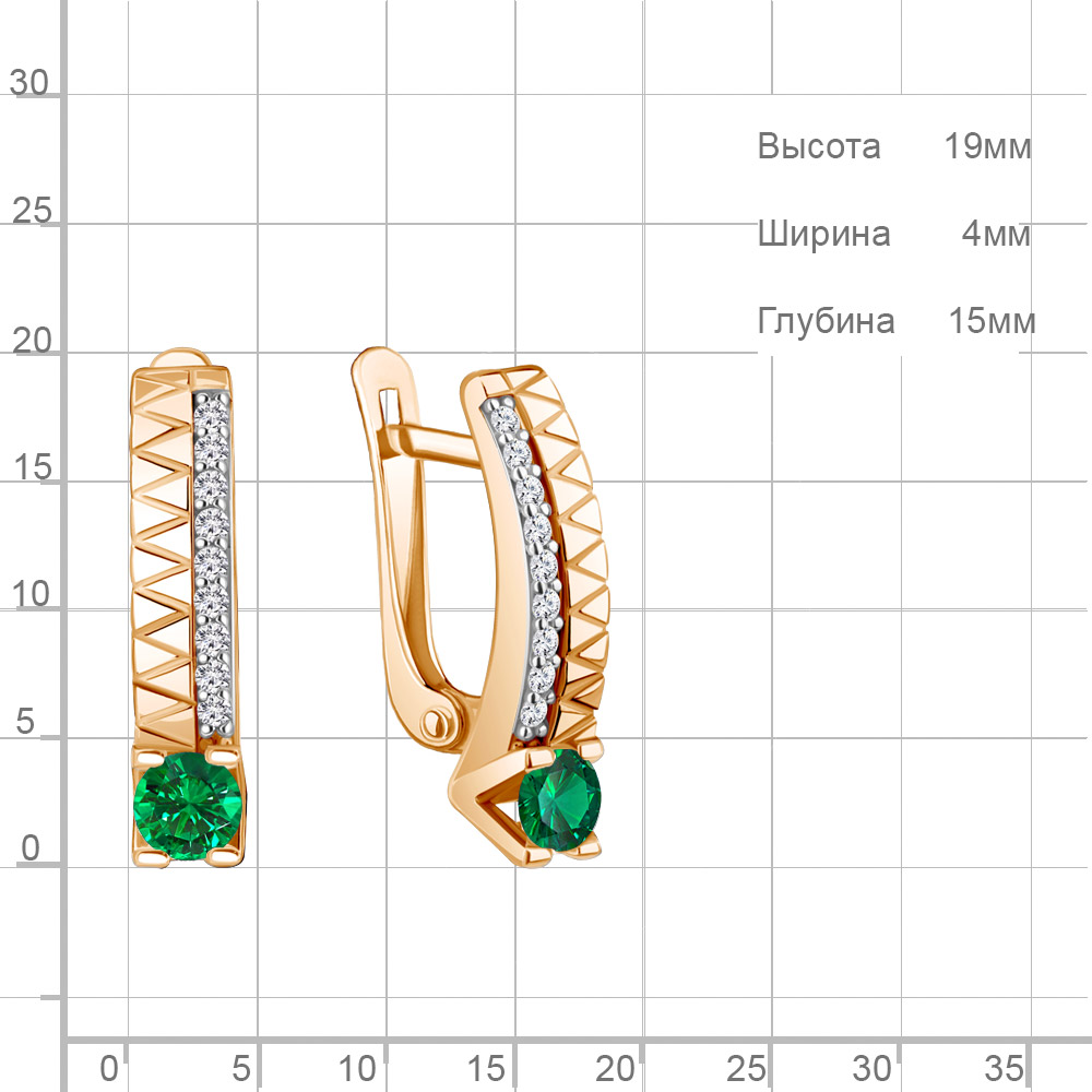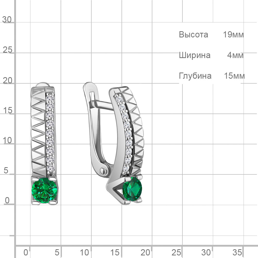 400135АГ Серьги из Серебра с наноизумрудами, фианитами