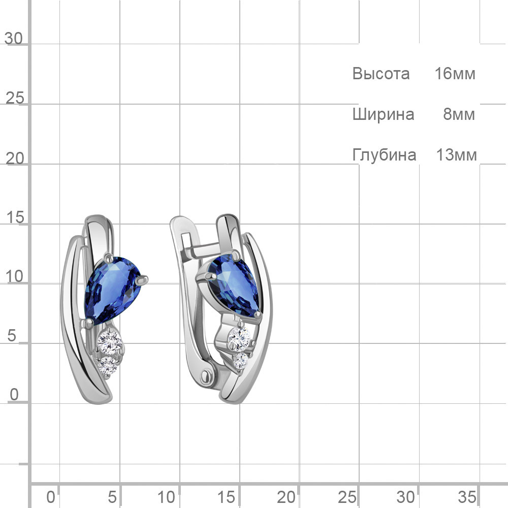 400311АБ Серьги из Серебра с наносапфирами, фианитами