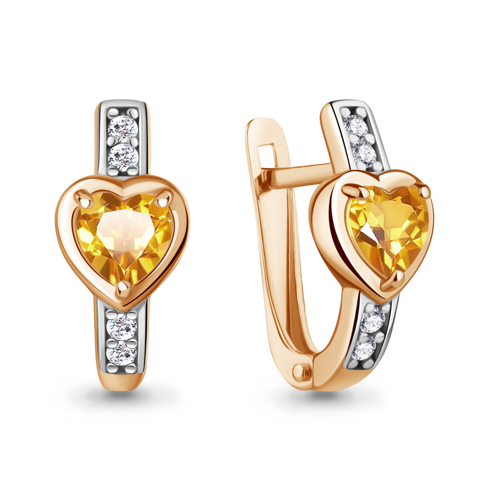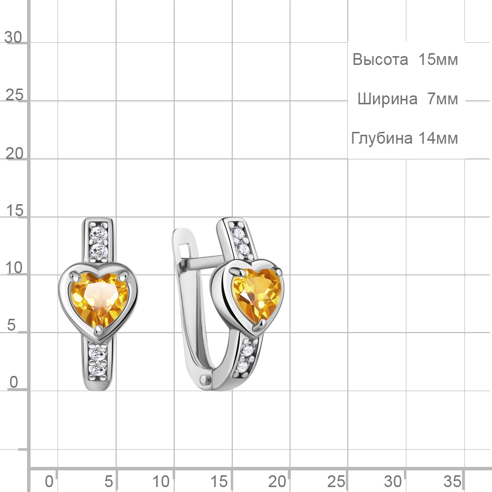 40051306А Серьги из Серебра с фианитами, цитринами