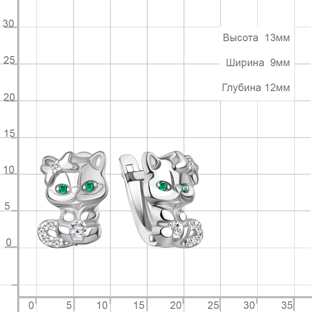 400541АГ Серьги из Серебра с наноизумрудами, фианитами