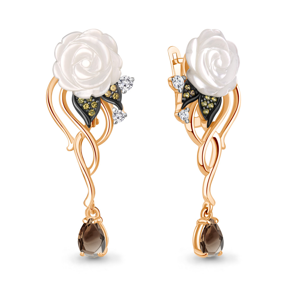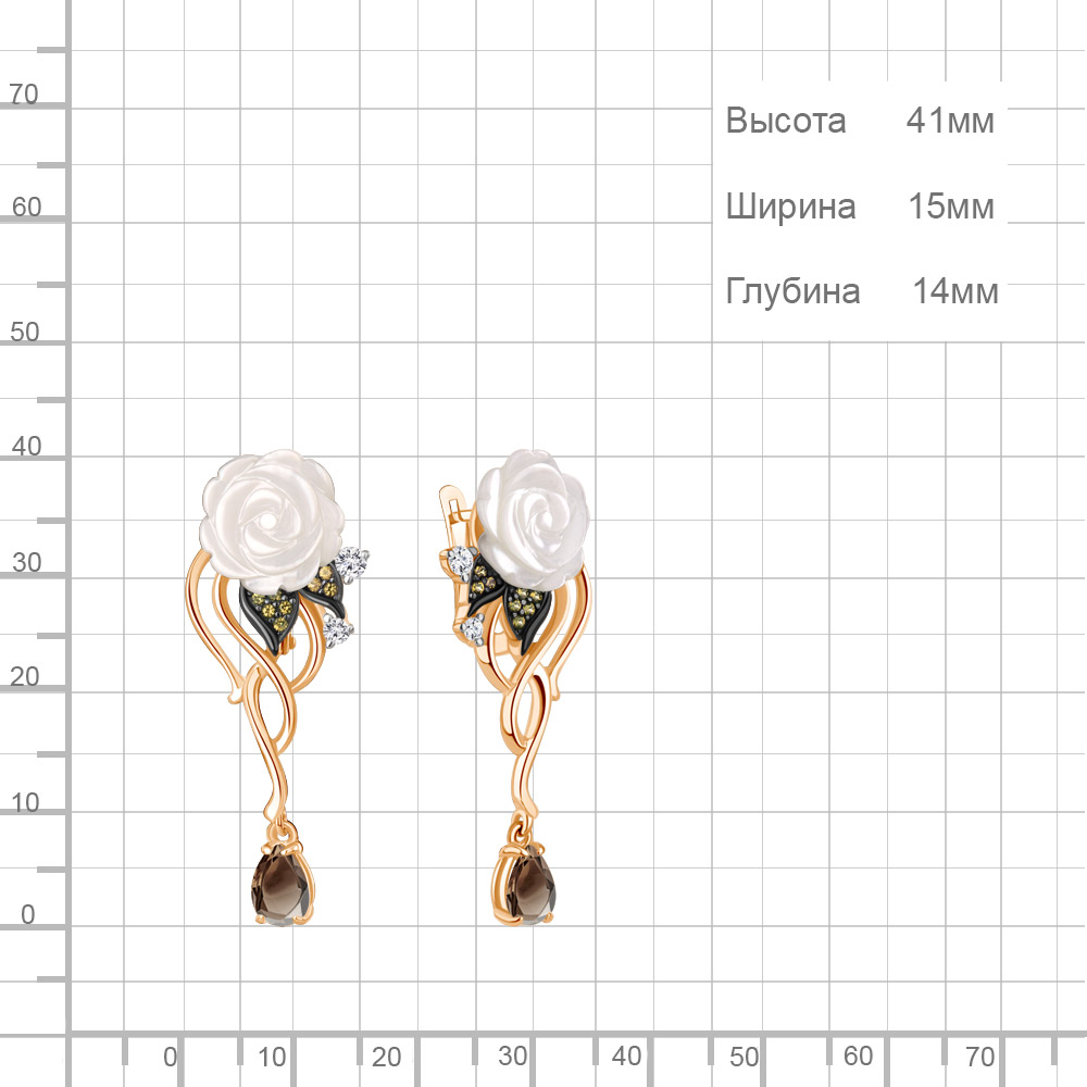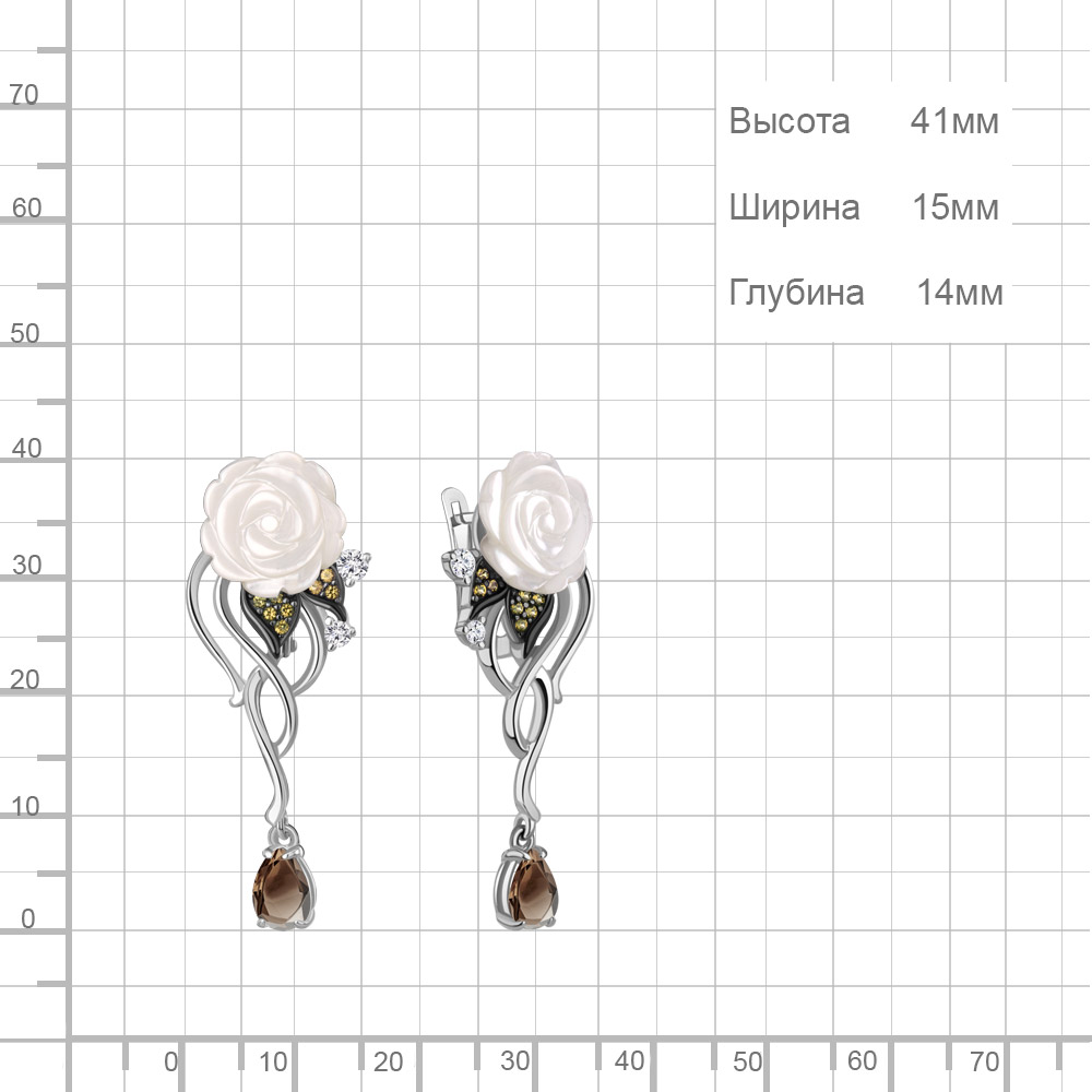 40054601АВЕ Серьги из Серебра с кварцами дымчатыми, наноцитриным, поделочными камнями, фианитами