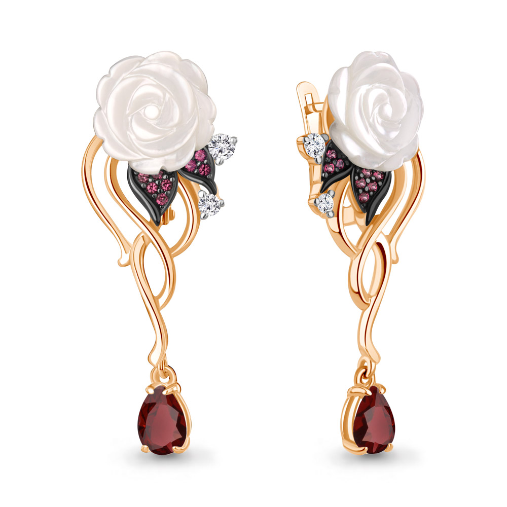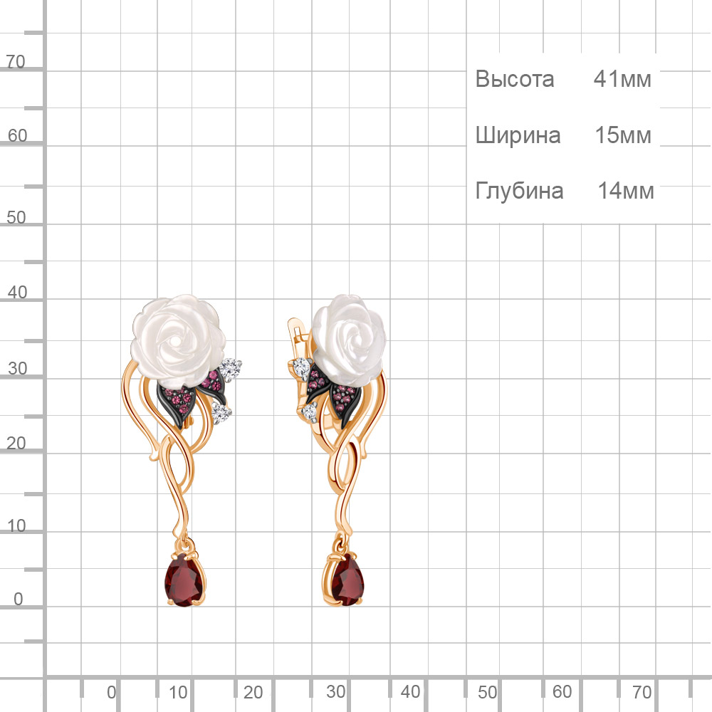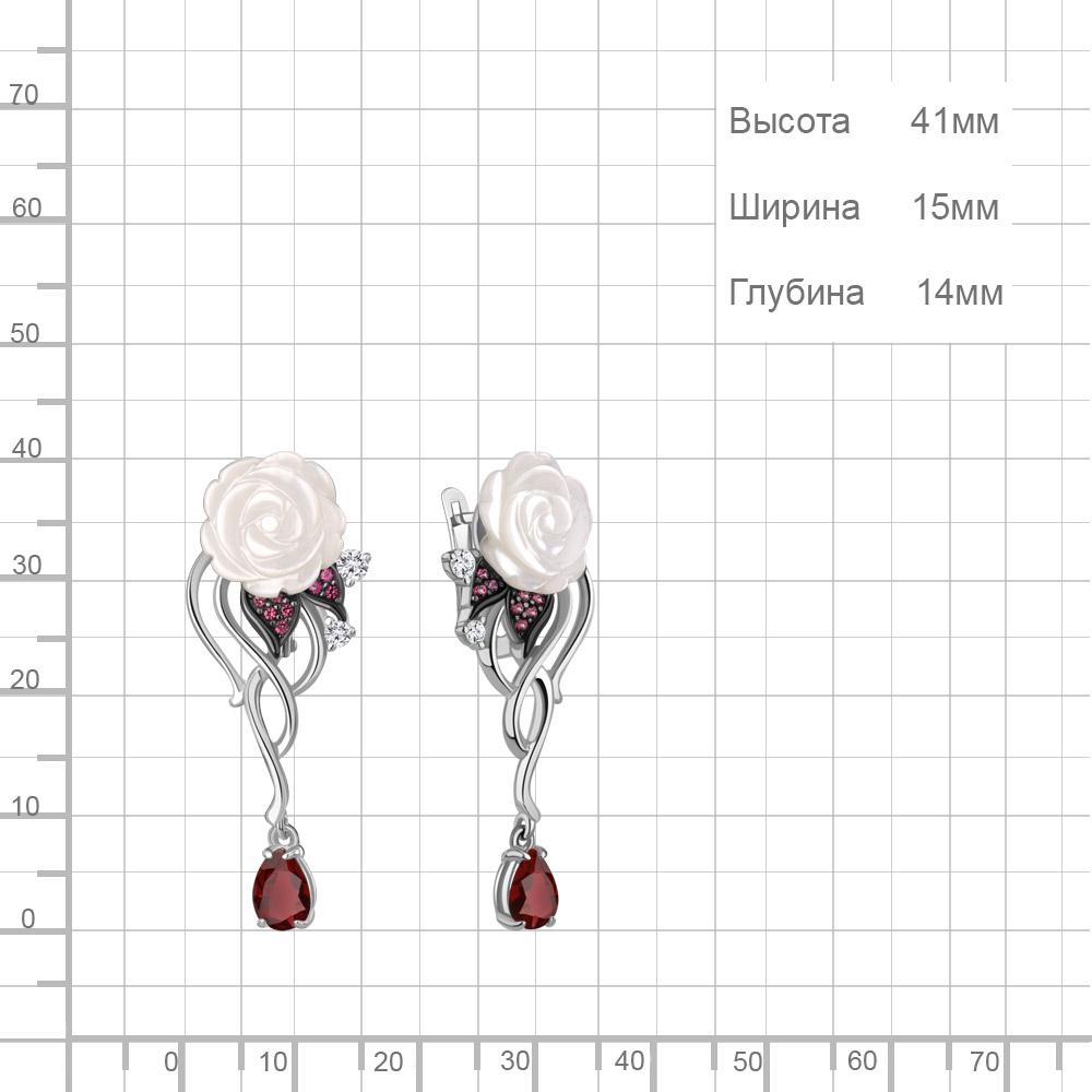 40054603АВ Серьги из Серебра с гранатами, корундами иск., поделочными камнями, фианитами
