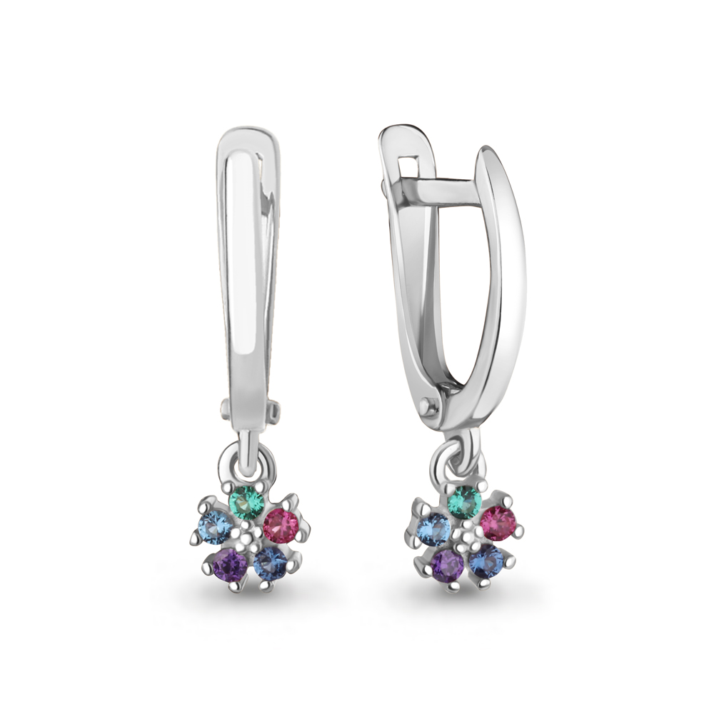 400559БВГД Серьги из Серебра с корундами иск., наноизумрудами, нанокристаллами, наносапфирами, фианитами