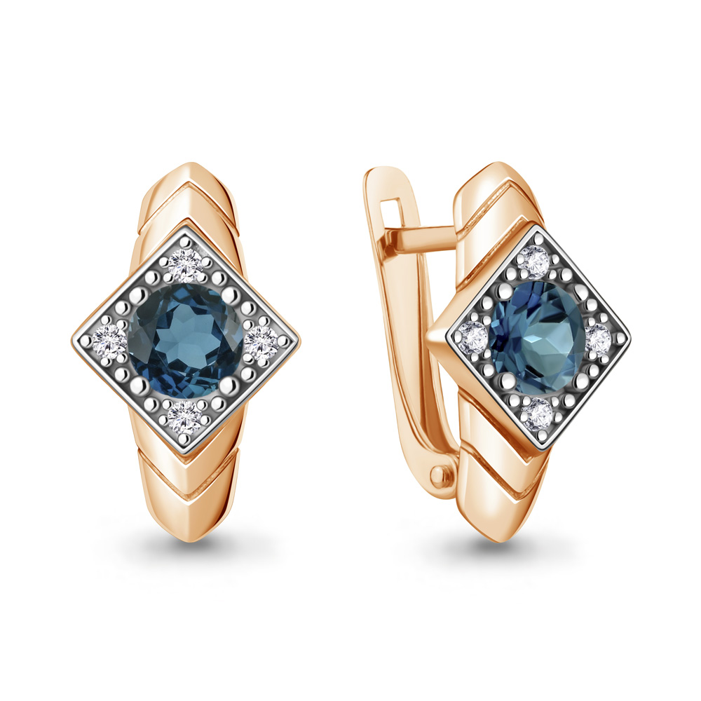 40058408А Серьги из Серебра с топазами лондон блю, фианитами