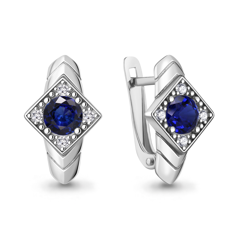 400584АБ Серьги из Серебра с наносапфирами, фианитами