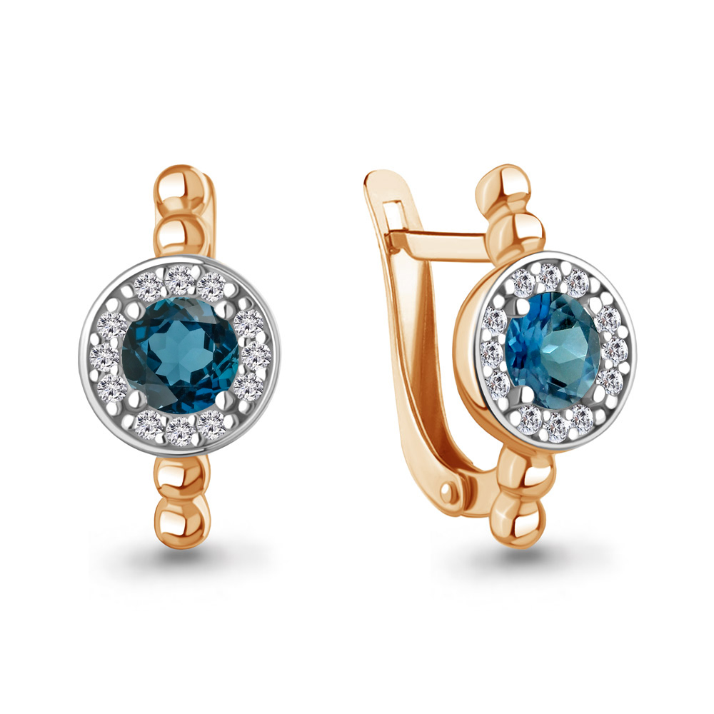 40058508А Серьги из Серебра с топазами лондон блю, фианитами