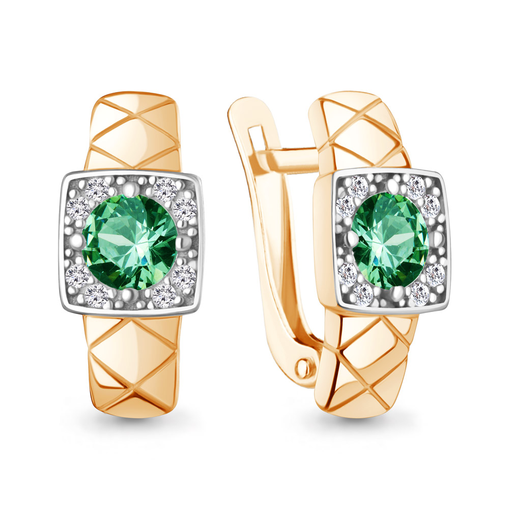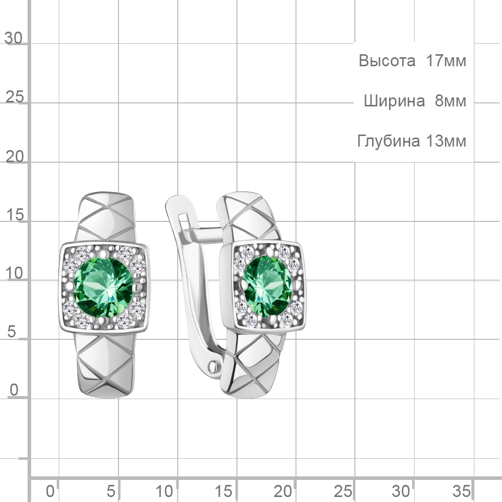 400586АГ Серьги из Серебра с наноизумрудами, фианитами
