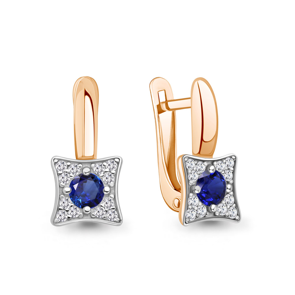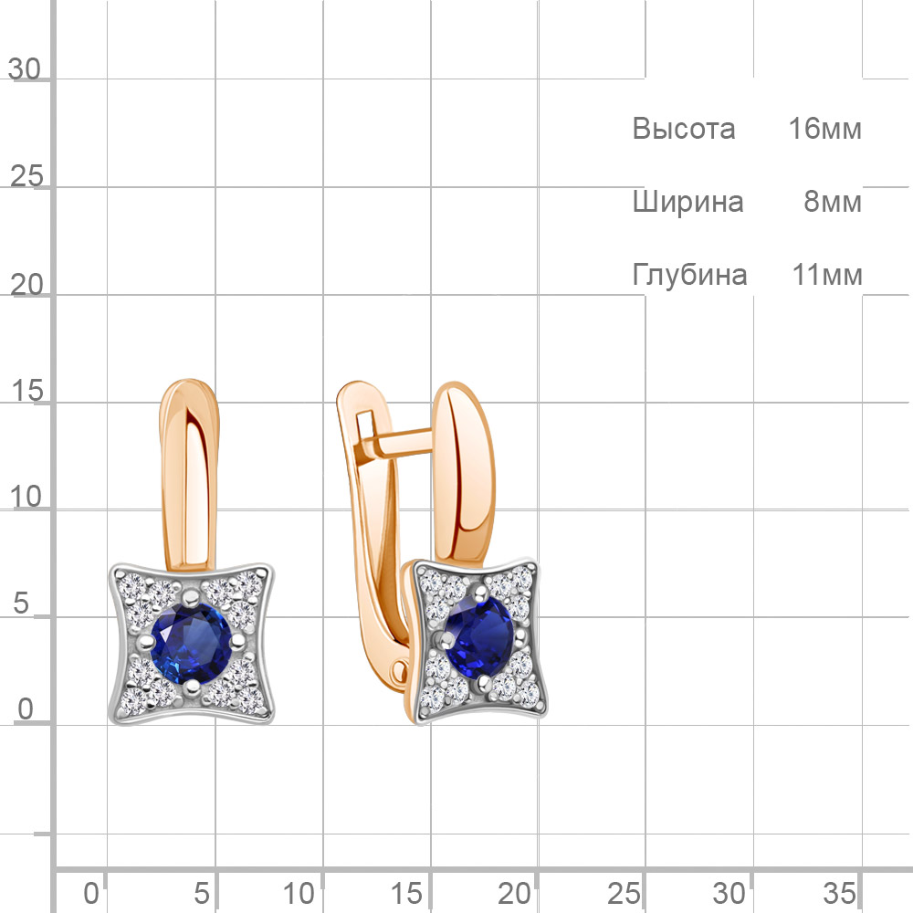400587АБ Серьги из Серебра с наносапфирами, фианитами