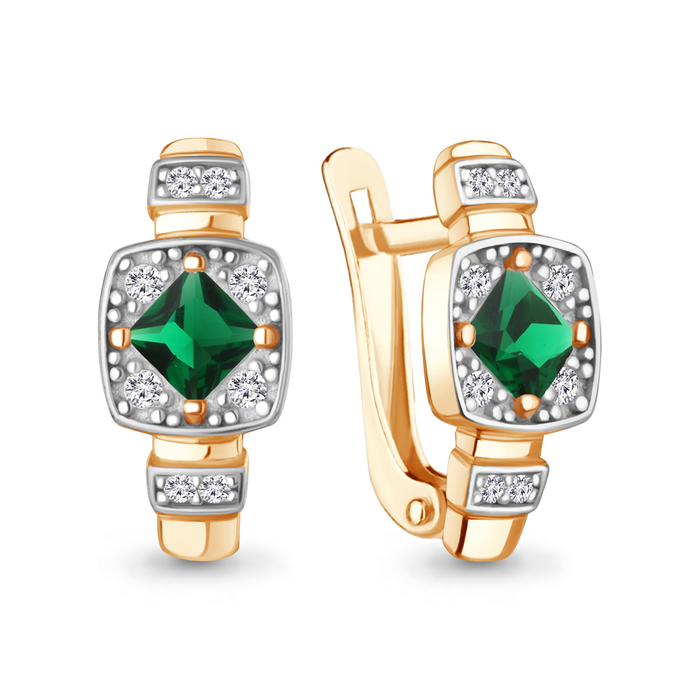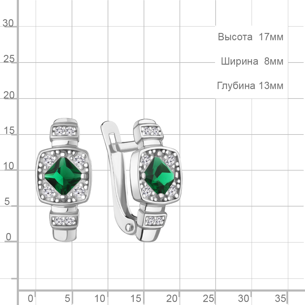 400588АГ Серьги из Серебра с наноизумрудами, фианитами