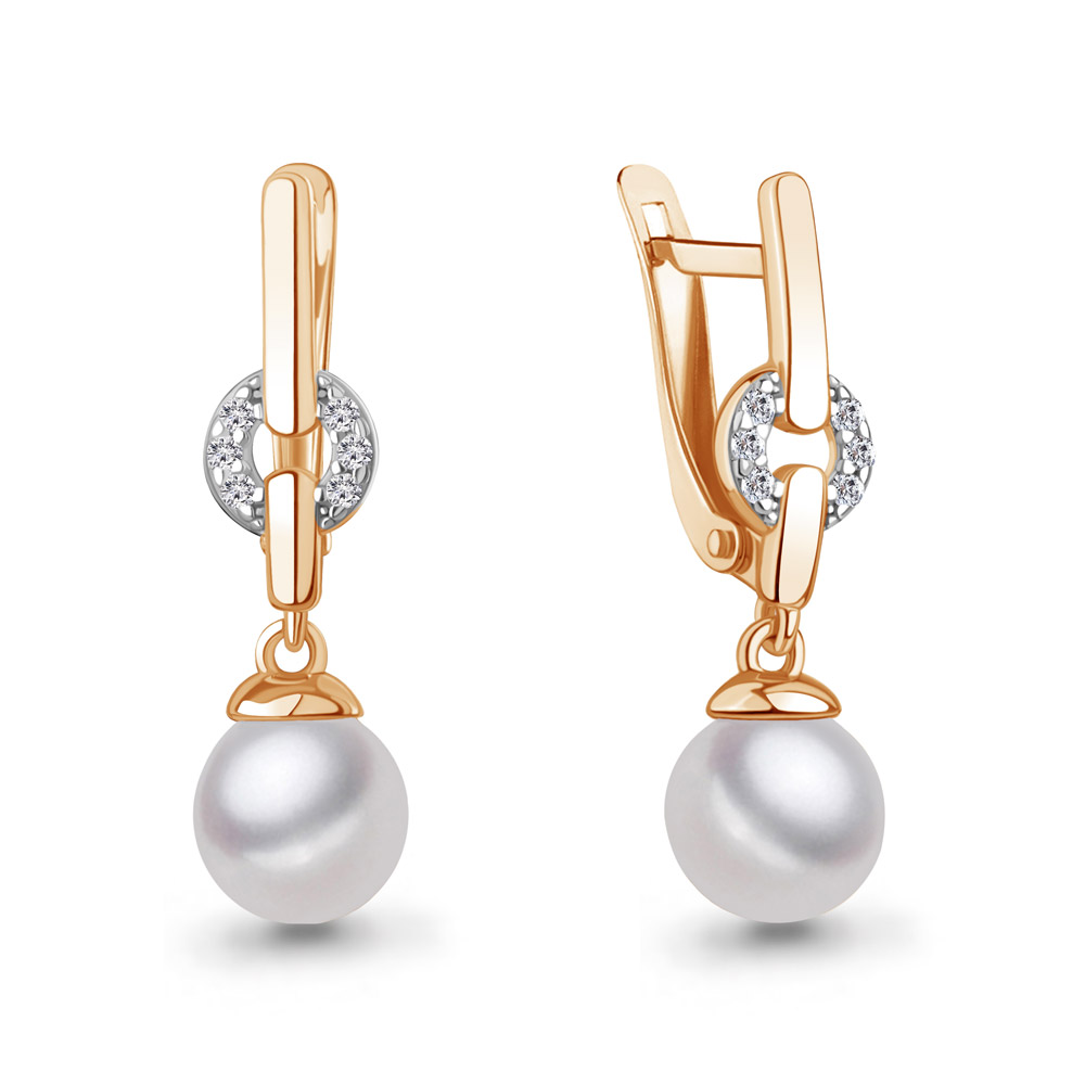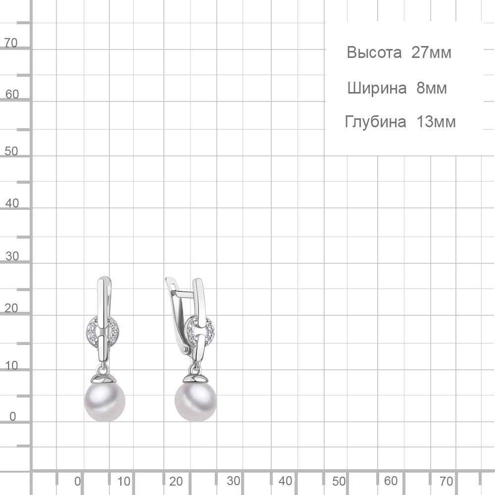 400651А Серьги из Серебра с имитациями жемчуга, фианитами