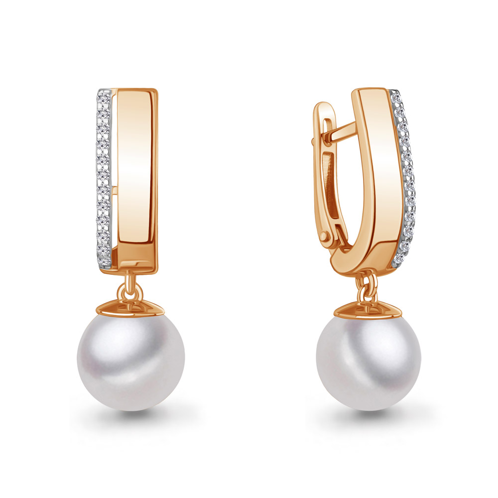 400709А Серьги из Серебра с фианитами, хрустальным жемчугом