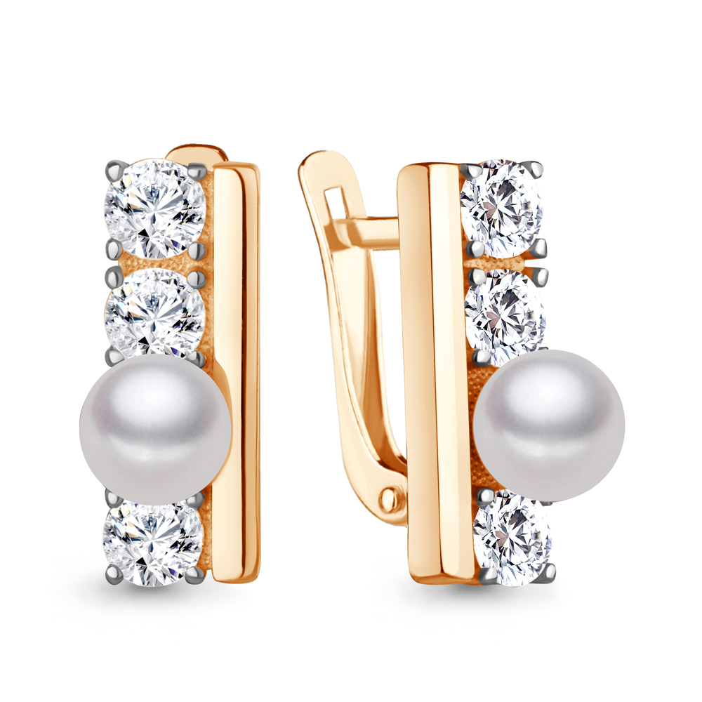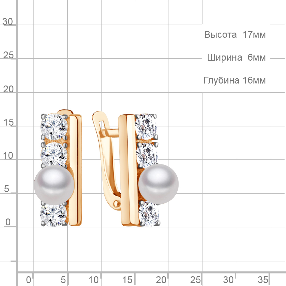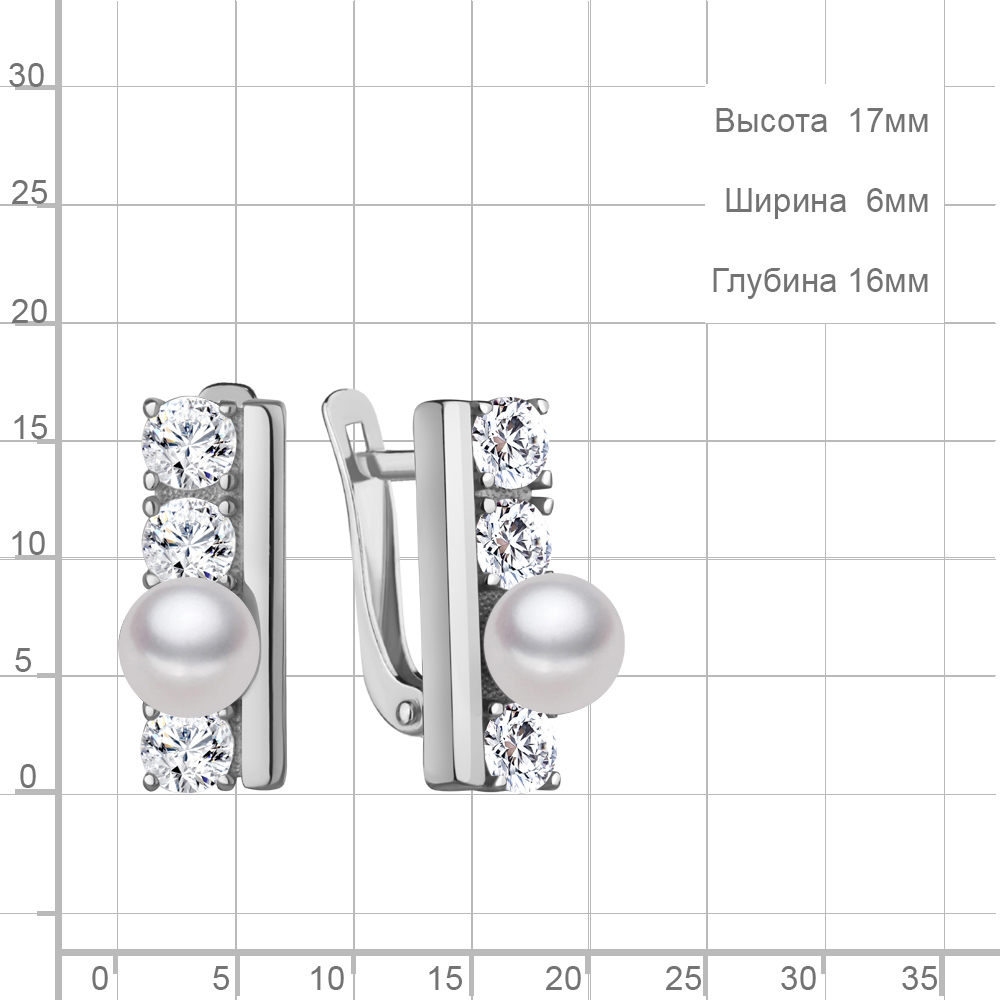 400723А Серьги из Серебра с имитациями жемчуга, фианитами
