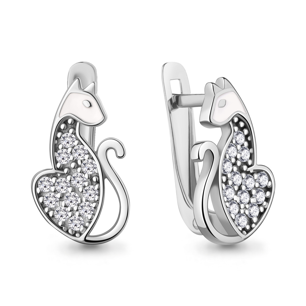 400791А Серьги из Серебра с фианитами, эмалью