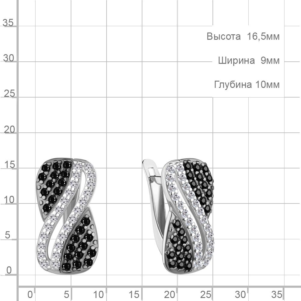 400843АЧ Серьги из Серебра с нанокристаллами, фианитами