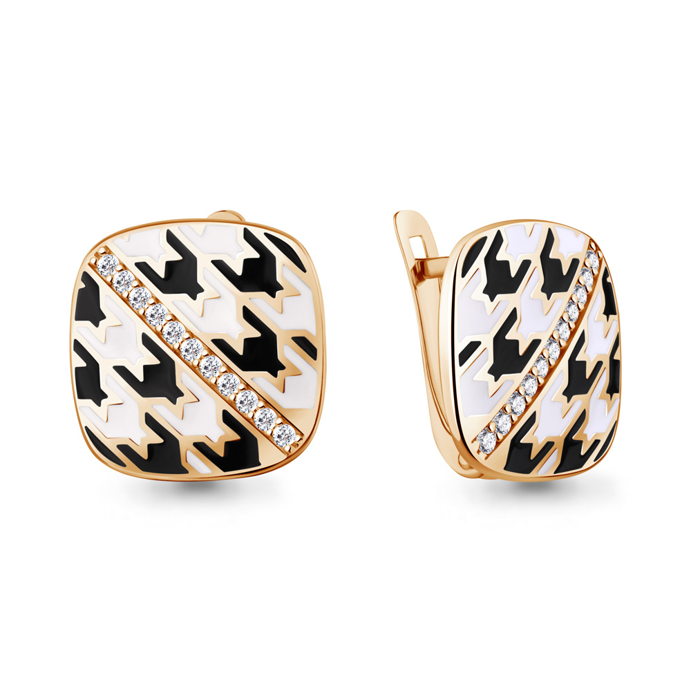 400974А Серьги из Серебра с фианитами, эмалью