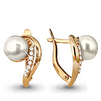 41121А Серьги из Серебра с культ. жемчугом аа, фианитами