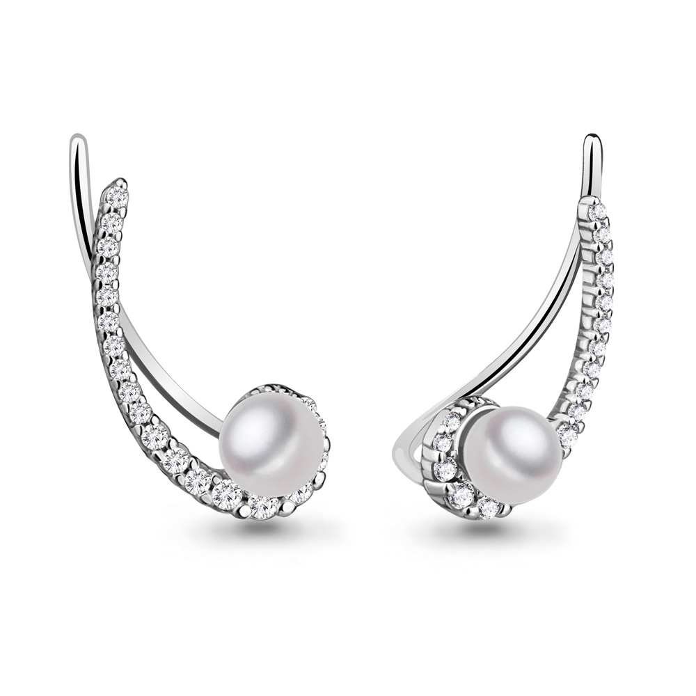 41265А Серьги из Серебра с культ. жемчугом ааа, фианитами
