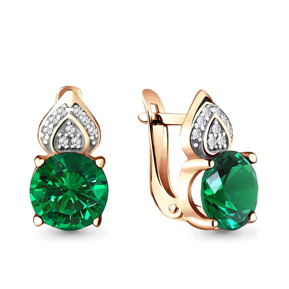 42890Г Серьги из Серебра с наноизумрудами, фианитами из коллекции "Клеопатра"