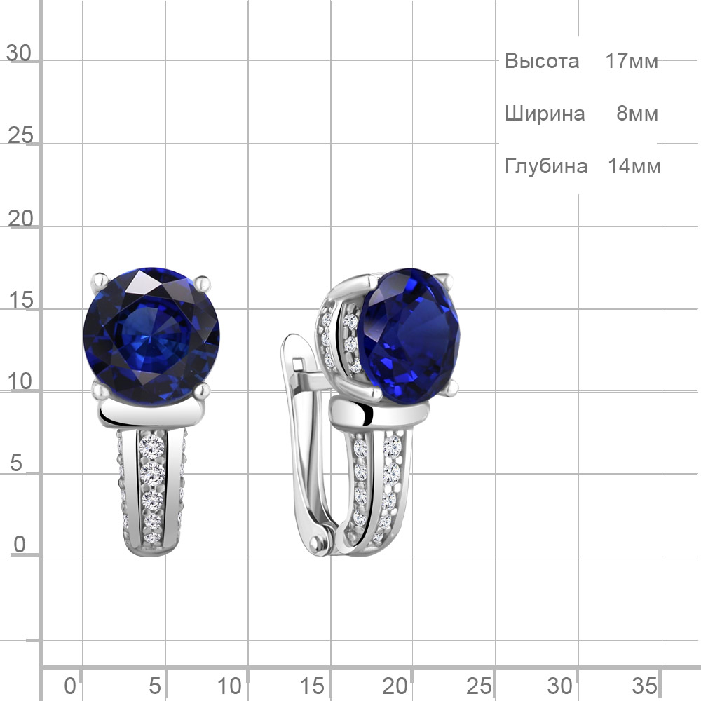 42901Б Серьги из Серебра с наносапфирами, фианитами из коллекции "Клеопатра"